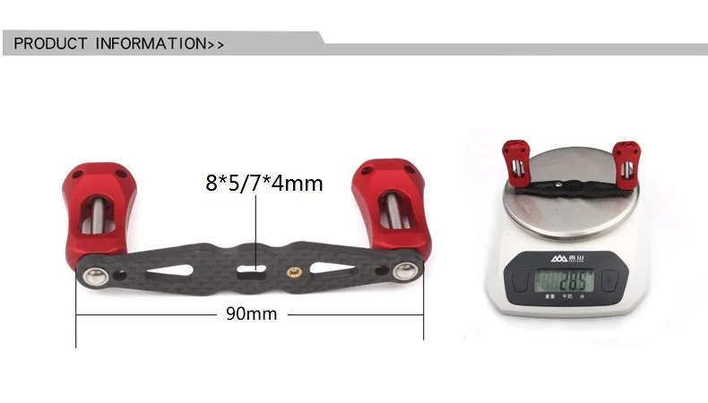 Mango de carrete de pesca de nuevo diseño KAWA, balancín de materiales de carbono de muy alta calidad con aleación de aluminio, accesorio de carrete de pesca, longitud de 90mm, tamaño del agujero 8X5/7x4mm