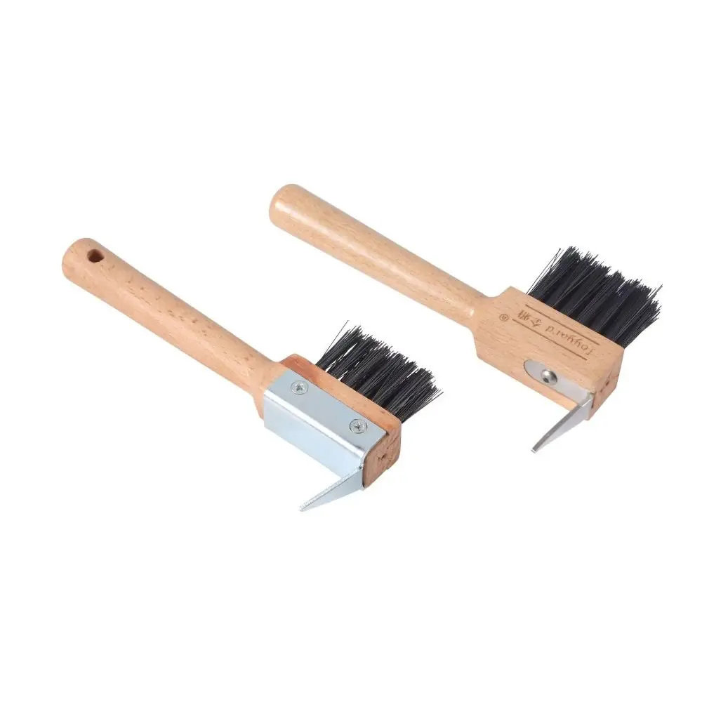 2 in 1 Brush The reinforced steel hook of our hoof pick is sturdy enough. The bristles of the brush are dense enough to easily clean crevices, and their length is just right.