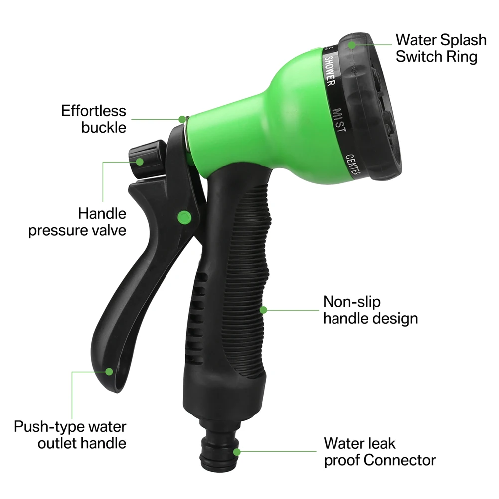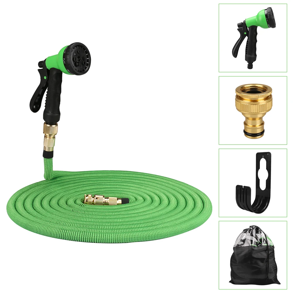 Mangueras de jardín Manguera de agua de 25-100 pies Mangueras de expansión de jardín flexibles expandibles Boquilla de 8 funciones Manguera de agua montable en la pared de pulverización