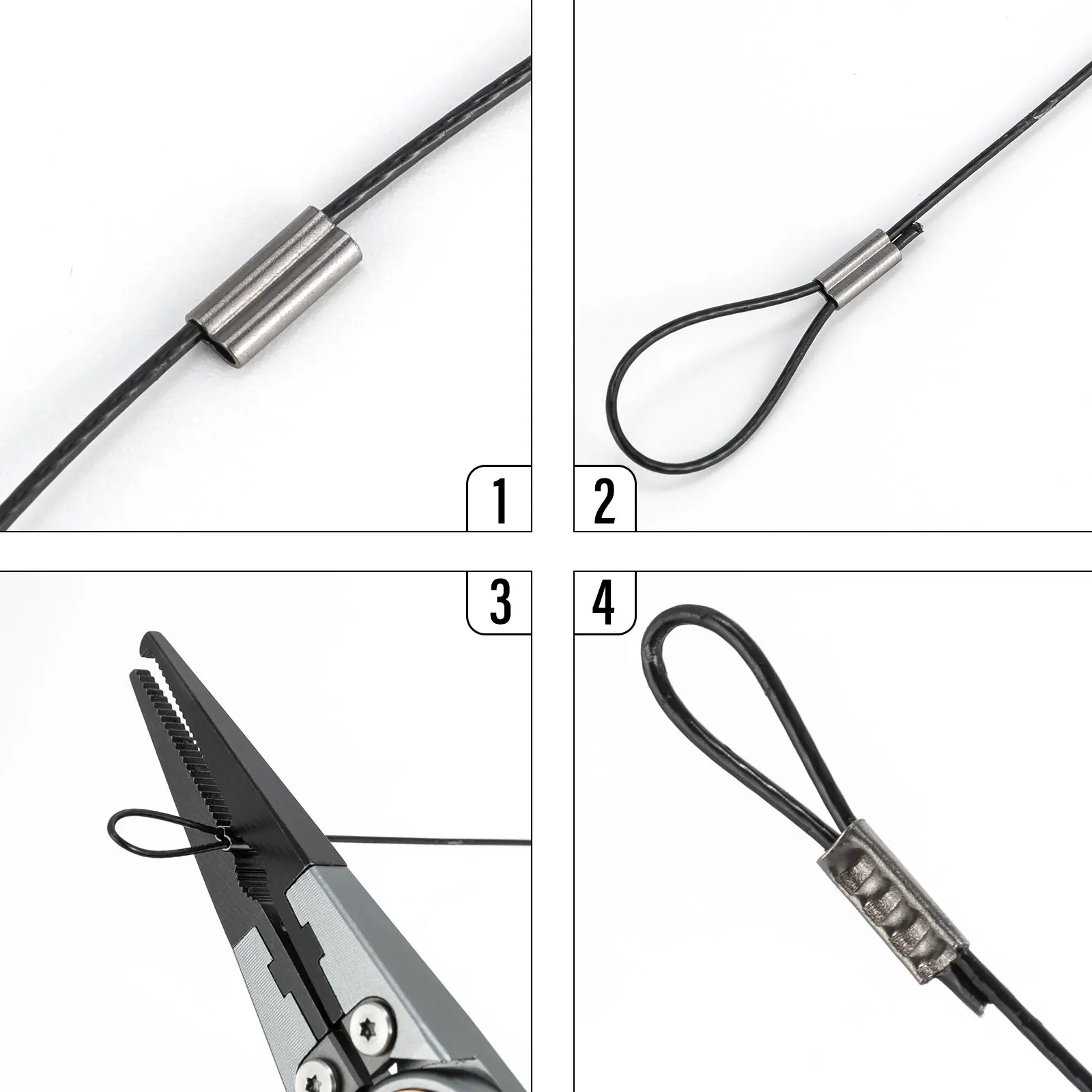 【Función conector】Las mangas de crimpado se utilizan para conectar una longitud de guía, ya sea monofilamento, alambre, cable o fluorocarbono.