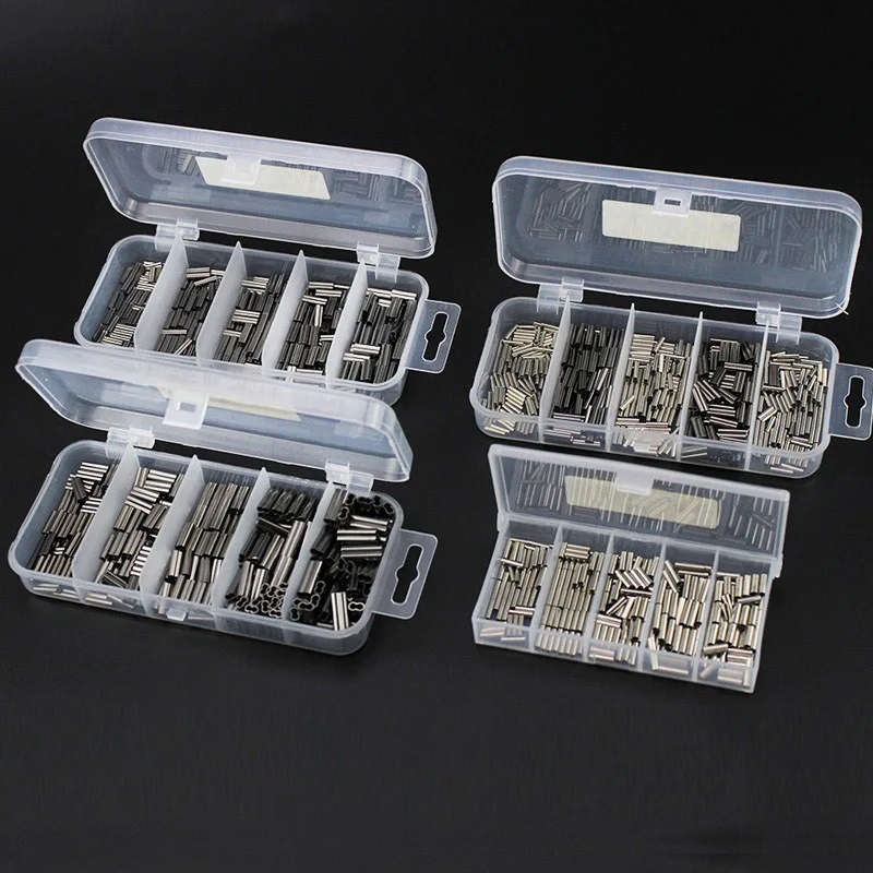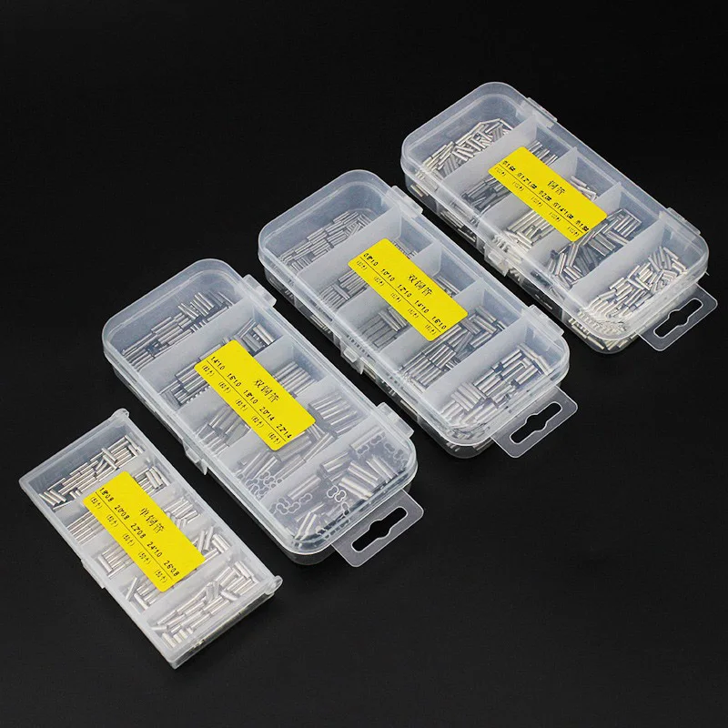 250-500 unids/caja de tubo de cobre redondo simple/doble mangas de prensado de barril conectores de líder de cable de línea de pesca tubos de cobre mixtos