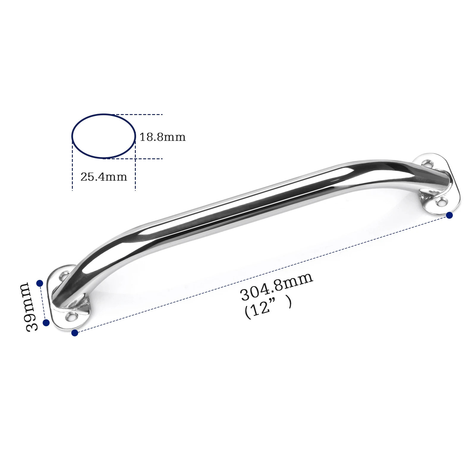 Manija de puerta multiusos para barco, accesorio de acero inoxidable 316, 12 pulgadas, 2 unidades