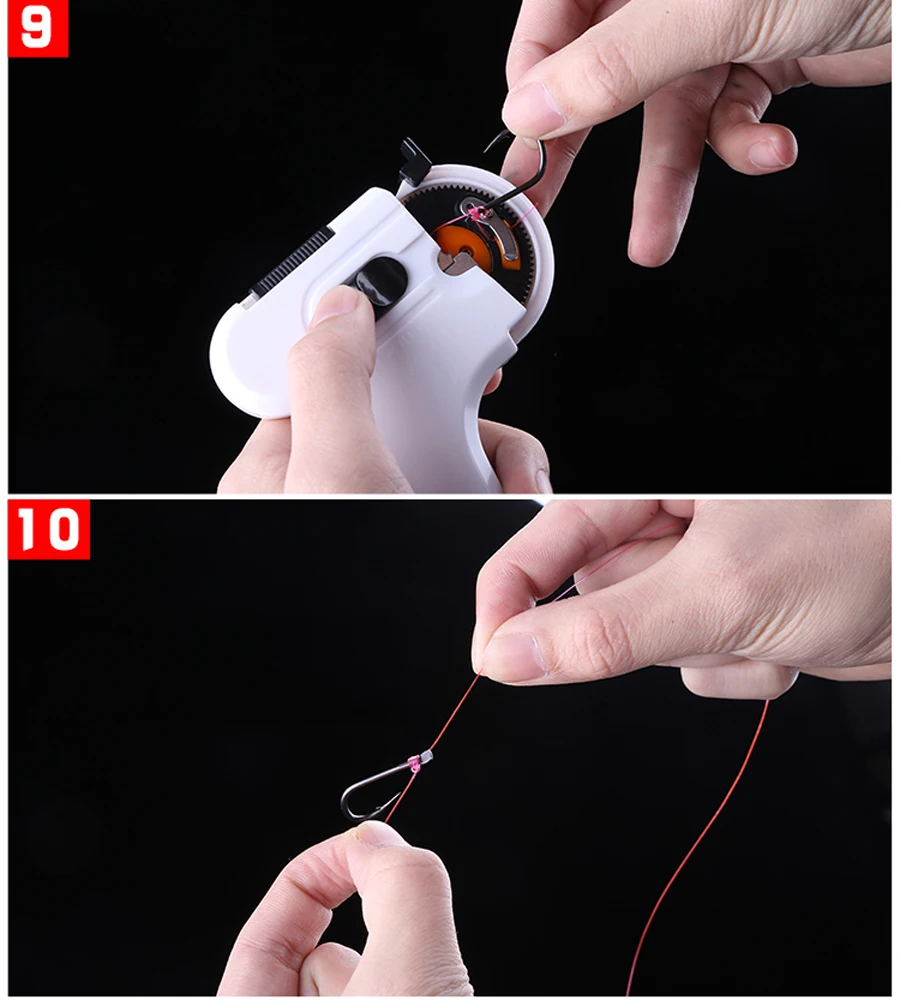 4.Seguro y fácil de usar: El atador eléctrico de anzuelos de pesca está diseñado para ser simple y fácil de operar. Incluso si es la primera vez que lo usas, podrás utilizarlo rápidamente.Si bien garantiza una alta eficiencia, también reduce eficazmente el riesgo de heridas por arma blanca causadas por una operación inadecuada.