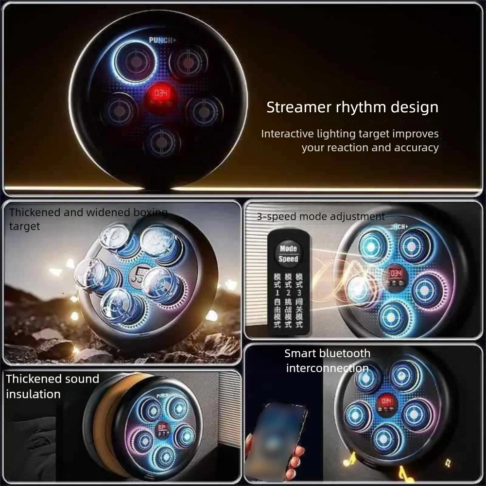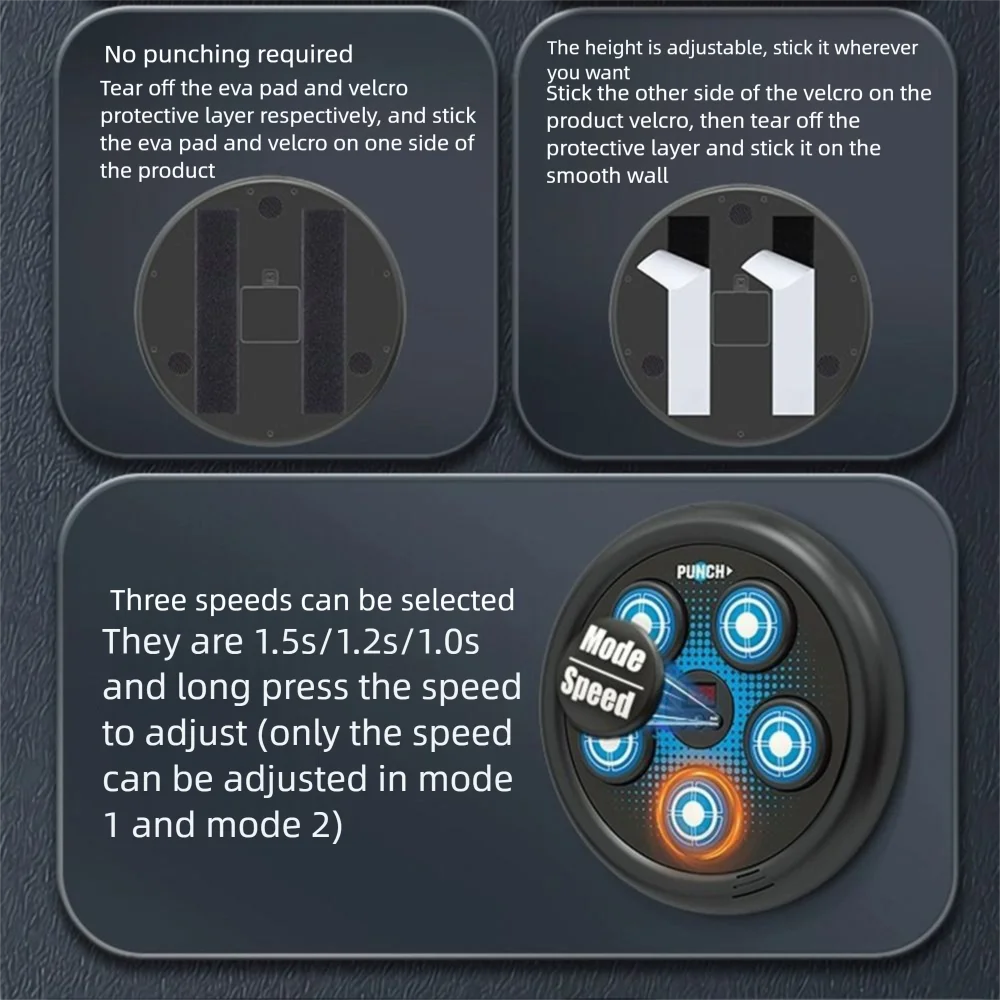 1.Adjustable Speed: Enjoy the freedom to adjust punching speed and set reaction light speed with this music boxing training machine. The large-sized punching module can withstand powerful impacts for an intense training session.