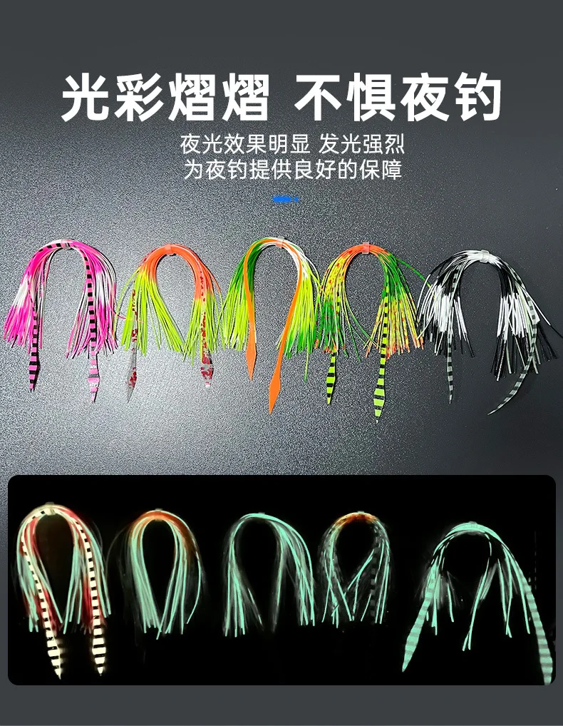 Mar Cebo de cinta de pesca marina Yolo 14cm 4,5 G Cebo de seda de silicona de doble Gancho luminoso accesorios de pesca