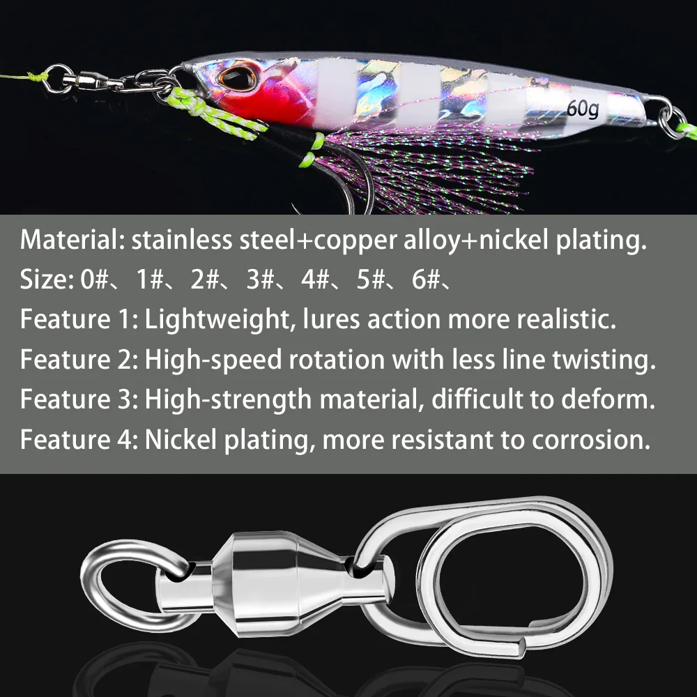 Mar. Yolo 10 Uds conector de pesca de acero inoxidable conectores giratorios de señuelo de pesca de carpa con rodamiento de bolas a presión