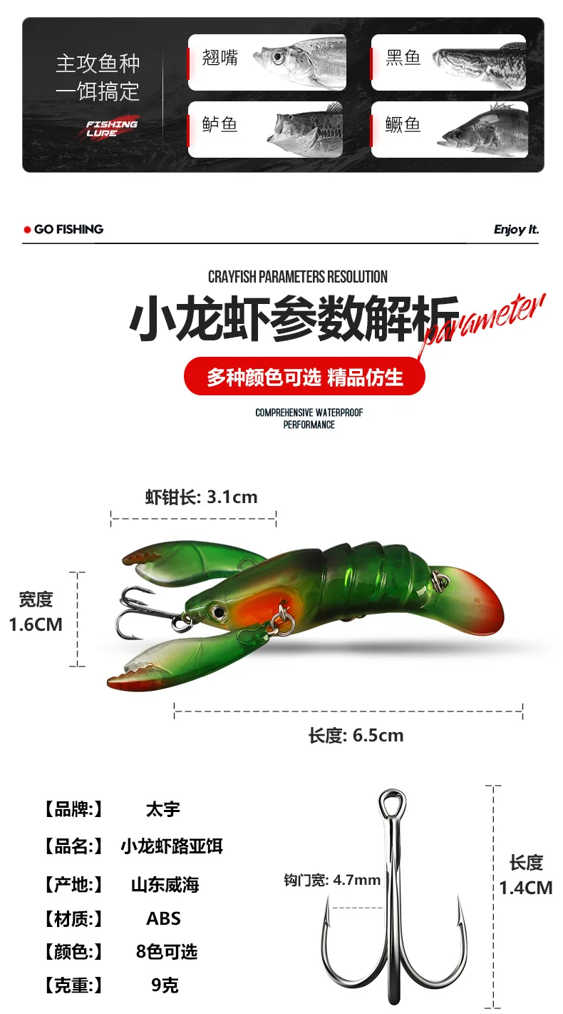 Mar Yolo agua de mar de agua dulce Cebo de cangrejo de Río cebo duro 8cm 9G ABS doble clip triple gancho simulación cebo negro