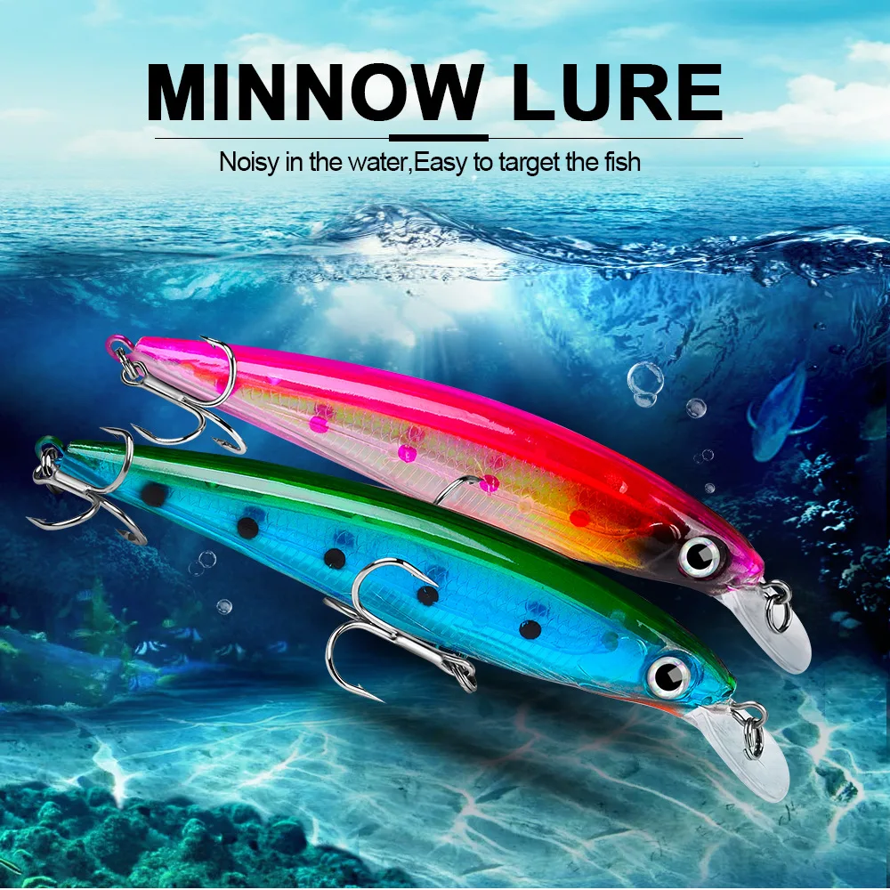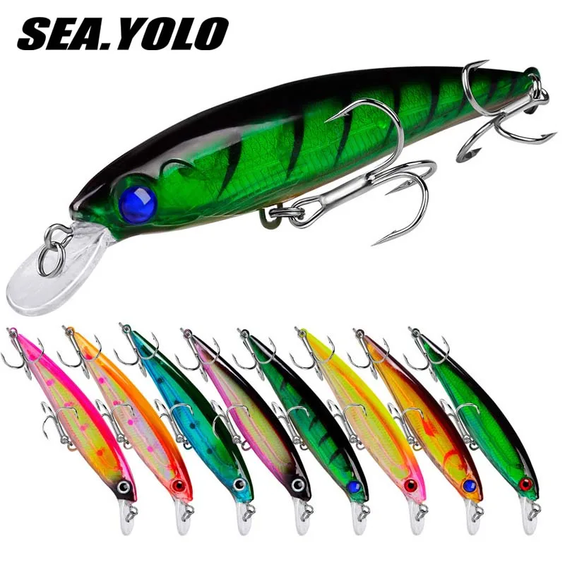 Mar Yolo-Cebo duro de plástico Minnow, anzuelo triple de largo alcance, 11cm, 13,4g, camino biomimético, cebo asiático, perca, equipo de pesca