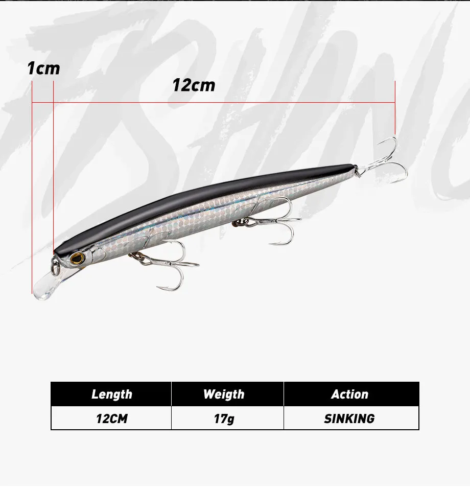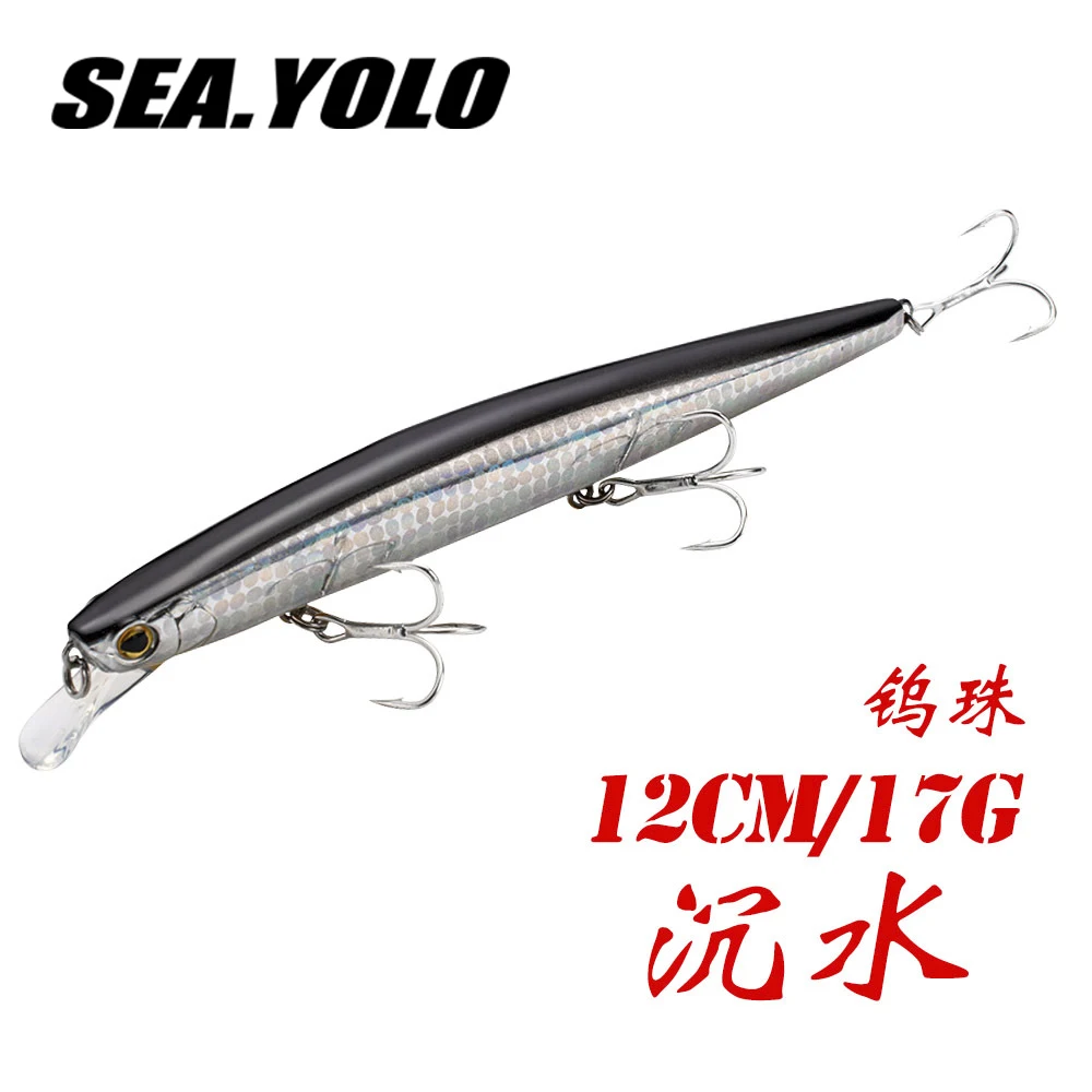 Mar Yolo-cebo de pececillo de hundimiento de largo alcance, anzuelo triple, simulación oscilante de hundimiento lento, señuelo de perca, artículos de pesca, 12cm, 17g