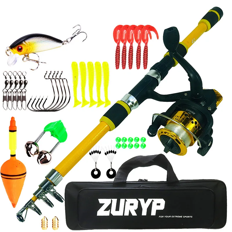 Mar Yolo cebo rueda de barra súper corta juego de aparejos de caña de pescar de gancho de cebo suave minnow para niños
