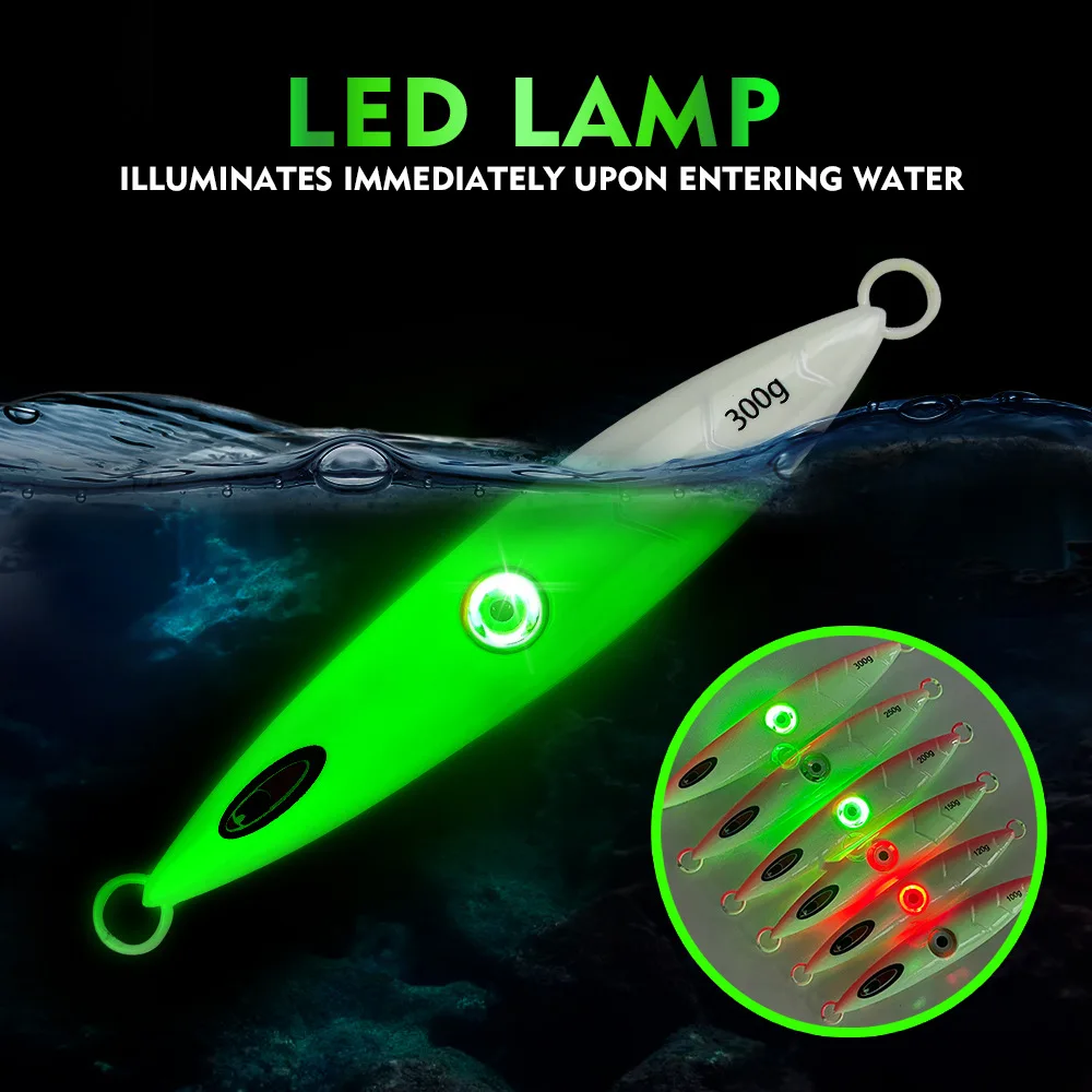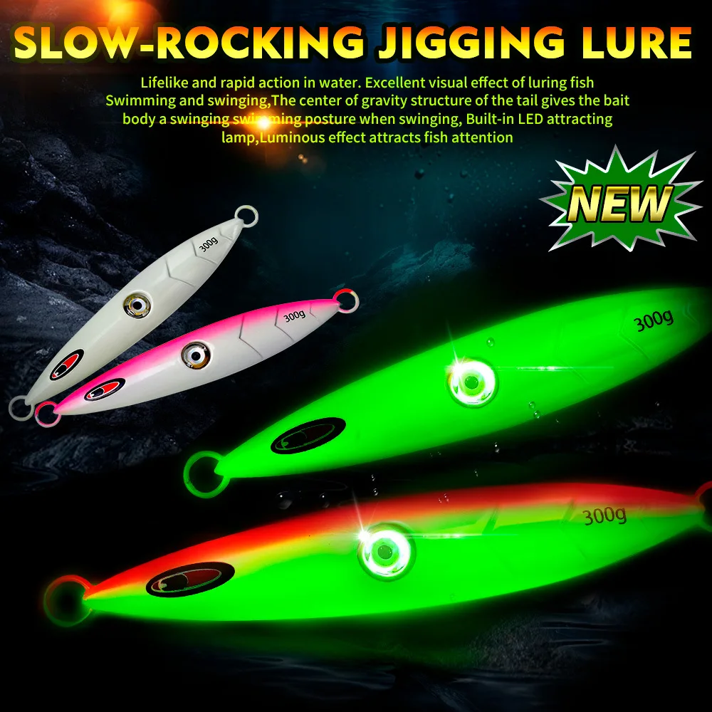 Mar Yolo señuelo de tiro largo, plantilla de cebo, luz electrónica Led, ojo de pez, luz nocturna, señuelo de vibración lenta, señuelo de perca, equipo de pesca en el mar