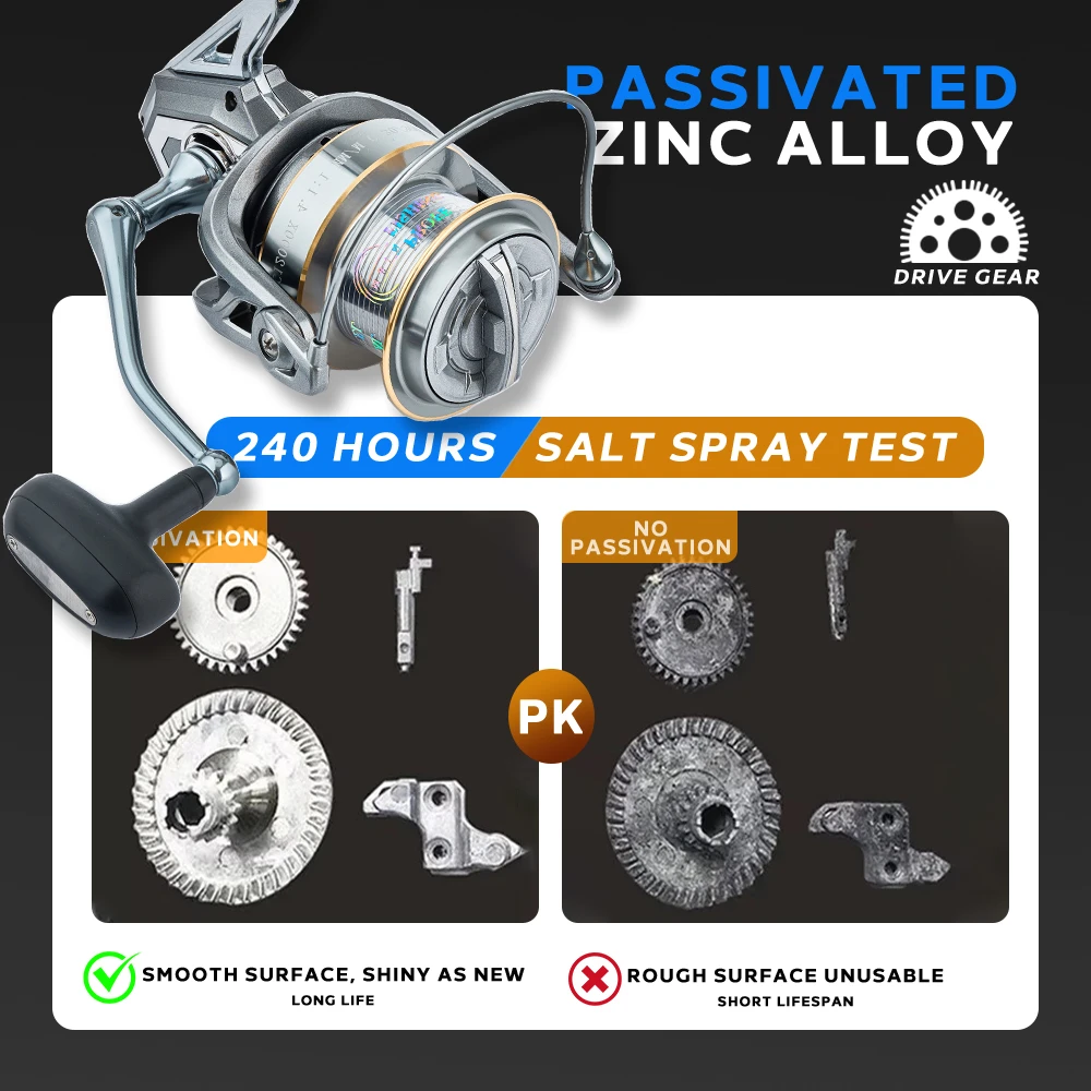 Marca MBLN, 90% totalmente de metal, 25 kg/55 lb, carrete de pesca giratorio, pie de aleación, mango de aleación, pie de aleación, equipo de aleación, suave y duradero