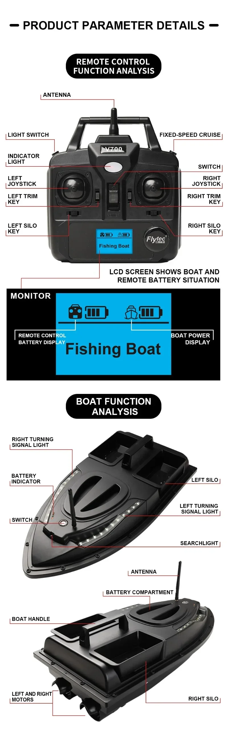Please note: This fishing boat cannot use two batteries at the same time, and the other battery is a backup battery.