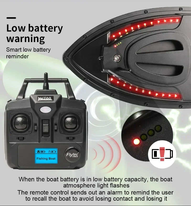+Low battery warning: When the boat battery is in a low battery state, the remote control will beep to remind