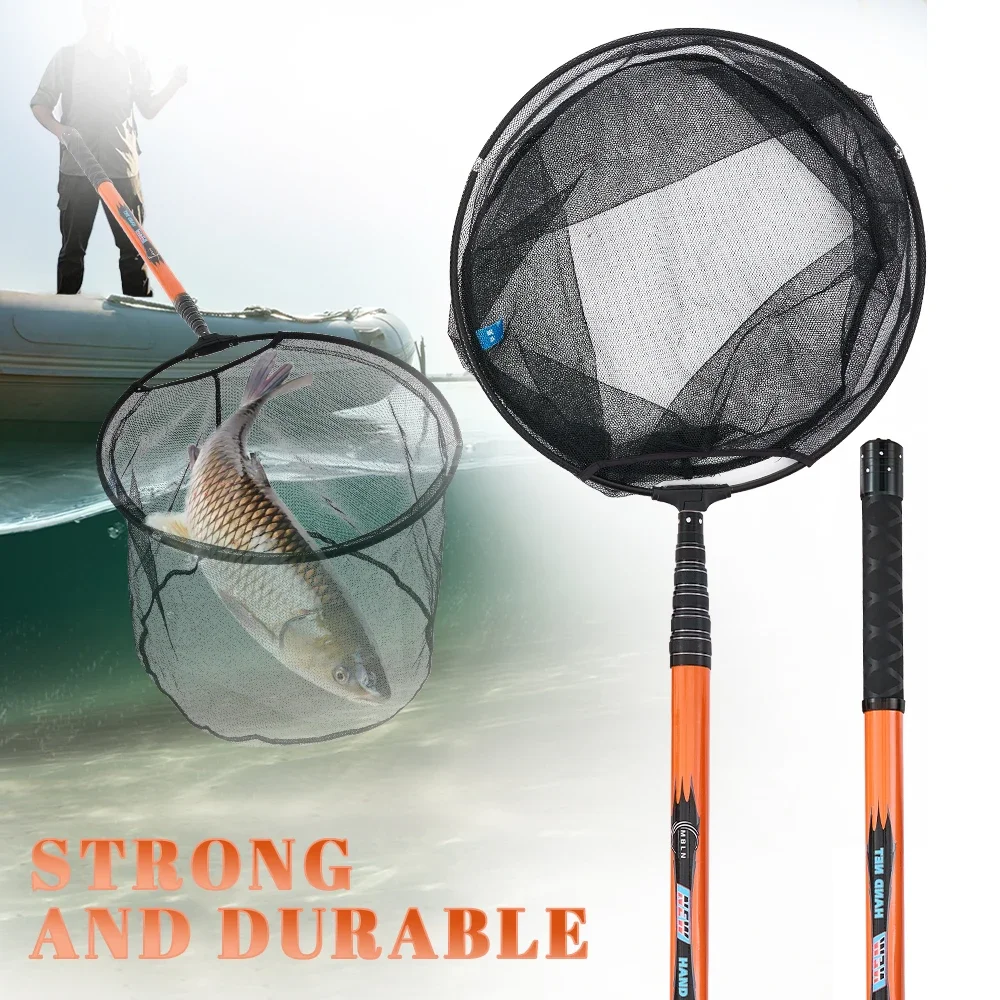 Marca MBLN, longitud Total de 370 cm/128 pulgadas, ultraligera 414g, red de aterrizaje de pesca portátil, red telescópica de fibra de carbono, cabeza de red de aleación