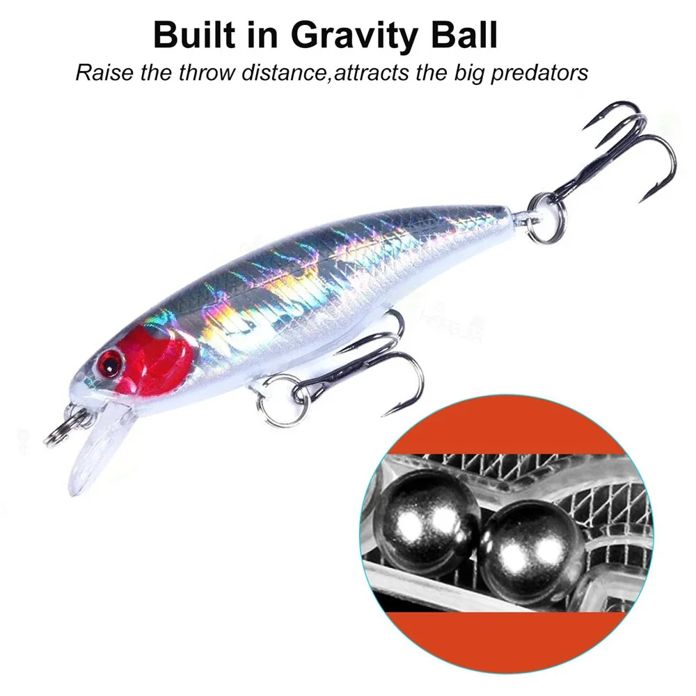 El ojo de pez biónico 3D es más realista y el efecto de atracción de peces es mejor.El recubrimiento láser 3D es firme y no se desvanece, y el efecto reflectante es mejor.Es más deslumbrante y provocativo en el agua.Y hay una bola de acero incorporada, que se mueve hacia la cola al lanzarla, lo que le permite lanzarla más lejos, y la bola de acero emitirá un sonido al arrastrarla en el agua, lo cual es más atractivo.Así que este es un cebo que hace que los peces sean irresistibles y los hace atacar de forma salvaje.