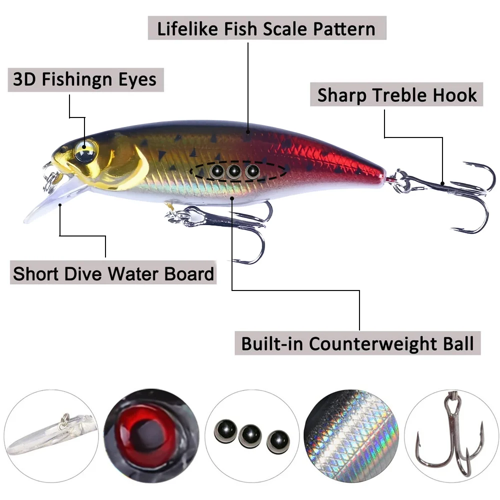 El funcionamiento es sencillo, adecuado para pescadores de varias etapas.Debido a su diseño de forma única y su diseño de placa de lengüeta único, tiene un mejor rendimiento en el agua.El cebo puede realizar diferentes acciones según sus diferentes operaciones.Puede imitar varias posturas como la muerte cercana, la permanencia, la deambulación y el fugaz. Colocando su excelente efecto reflectante y su forma biónica, puede capturar más peces.