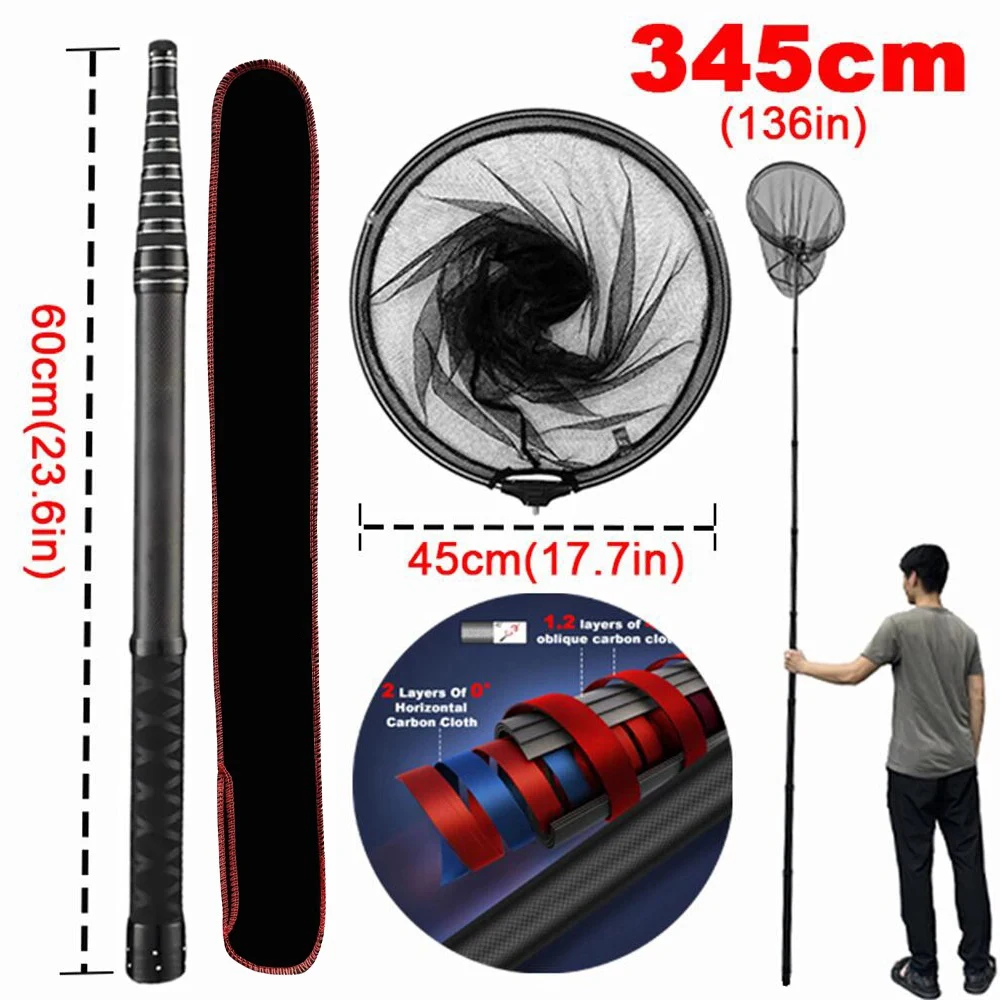 Nombre del producto: caña telescópica de malla de carbono, red de pesca.