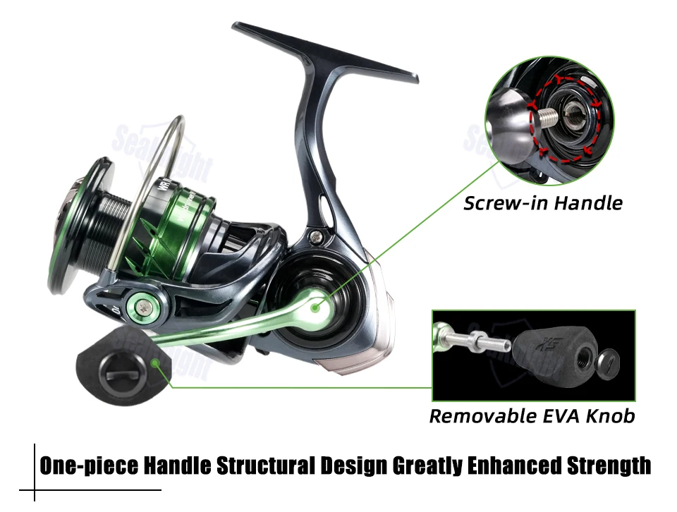 1. Tecnología ligera y eléctrica: el diseño de cuerpo ultrafino y el carrete de aluminio mecanizado CNC son ideales para pescar durante mucho tiempo.