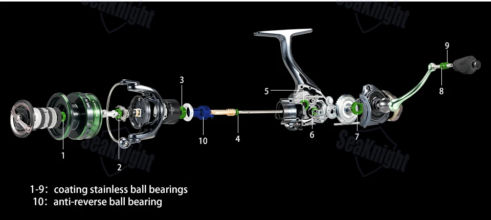 9+1 rodamientos de bolas + rodamiento antirretroceso unidireccional proporcionan un funcionamiento suave.