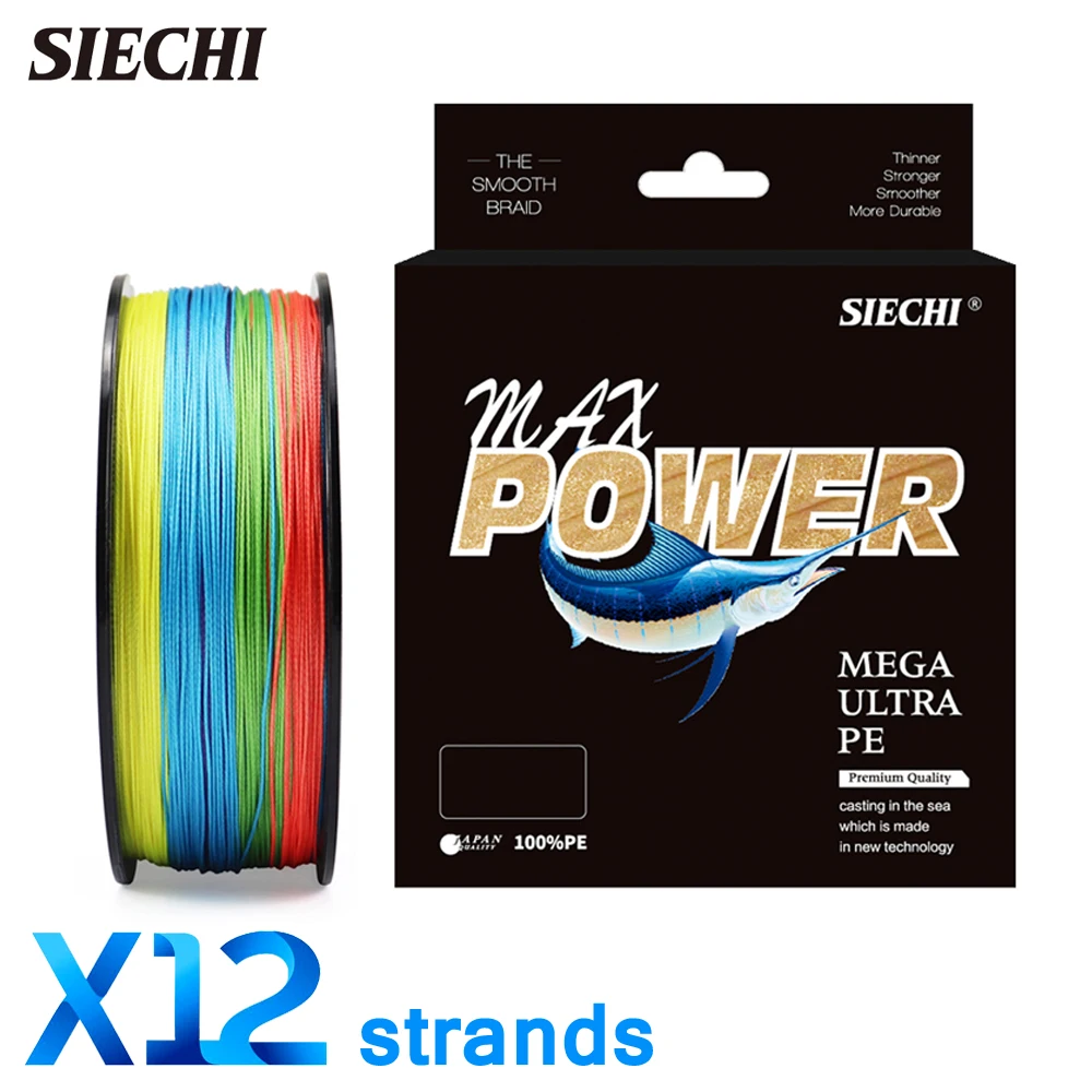 Línea de pesca de 12 hebras de marca SIECHI, 500M, tecnología gran angular avanzada, 18-136LB, 8X, línea de PE trenzada, pesca en agua dulce y salada