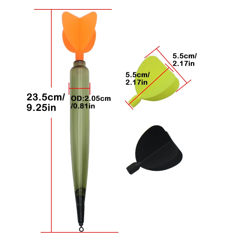 El flotador marcador de forma aerodinámica ha sido diseñado para lanzar larga distancia y precisión. Se suministra con tres vuelos intercambiables de diferentes colores, dando una excelente visibilidad en todas las condiciones.