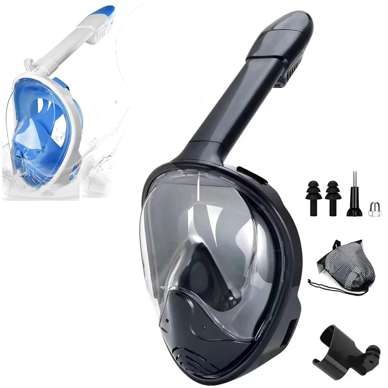 • Diseño de máscara facial completa:El diseño de la máscara facial completa garantiza un ajuste cómodo y seguro tanto para niños como para adultos, proporcionando una experiencia inmersiva bajo el agua.
