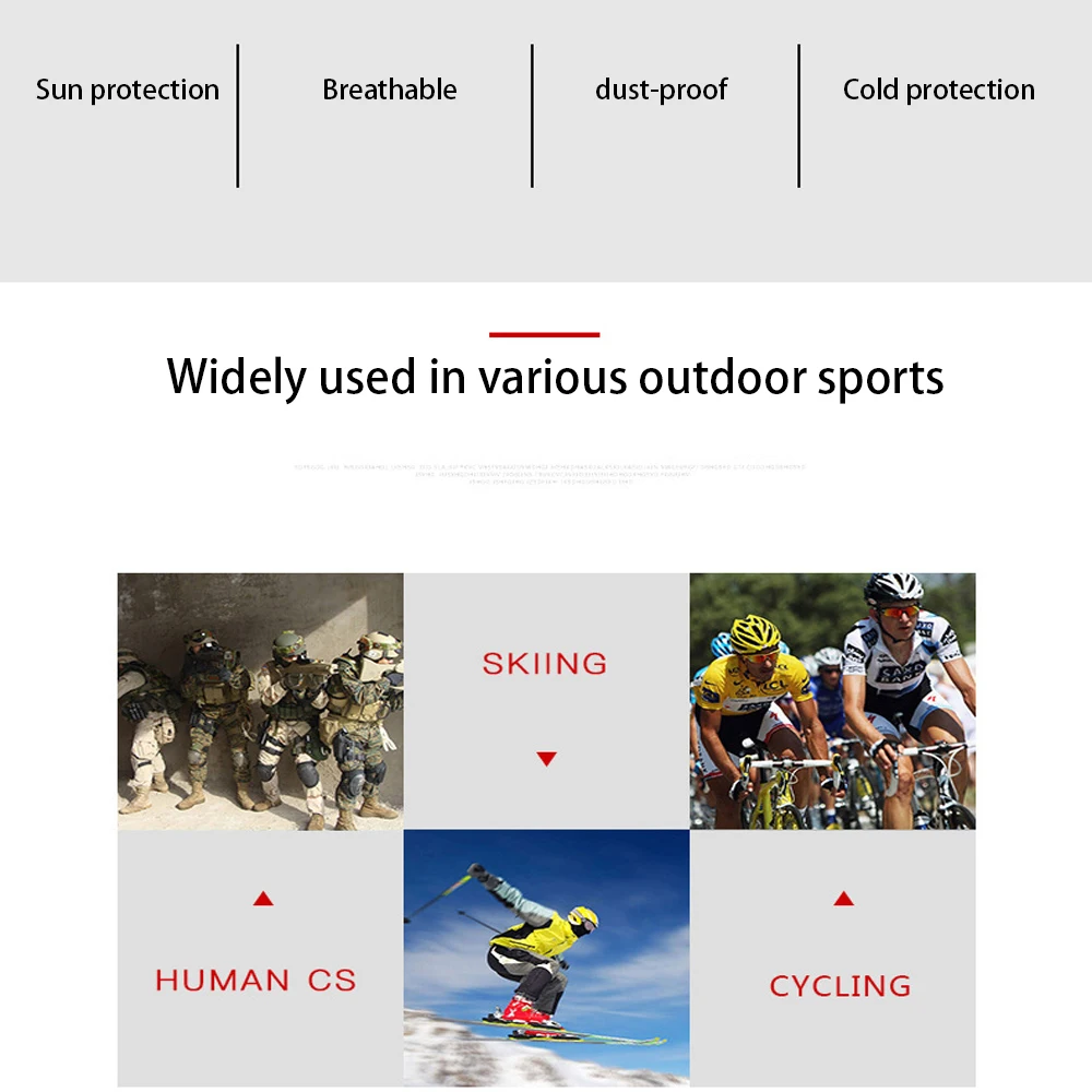 1. Protección solar 2. Transpirable 3. A prueba de polvo 4. Protección contra el frío