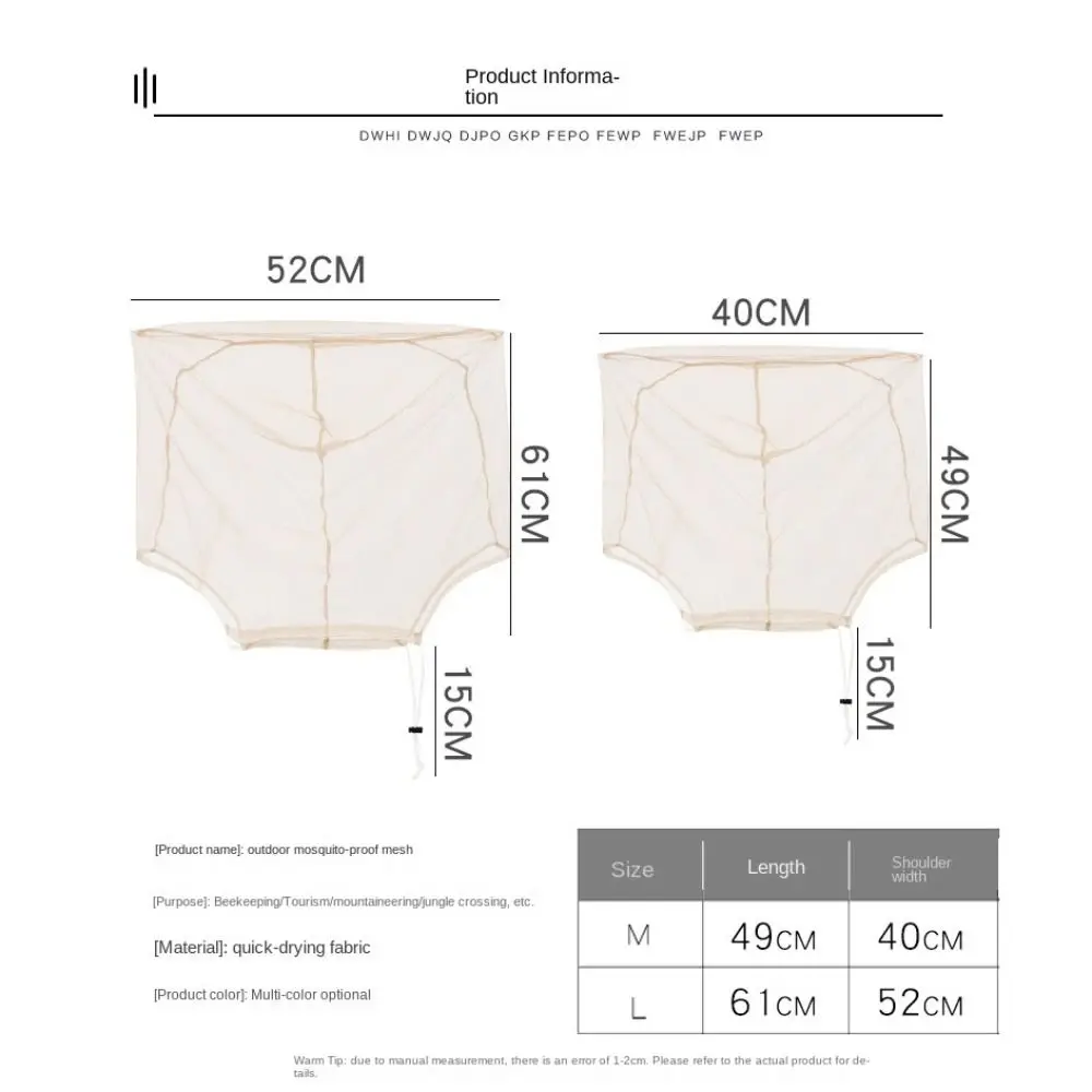 Característica: previene la picadura de abejas, transpirable con sombrilla.