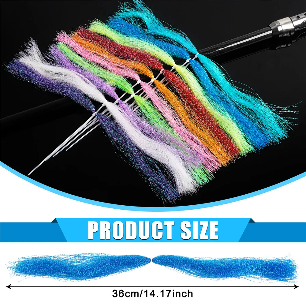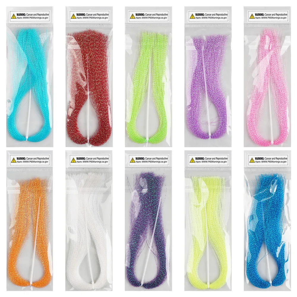 1. Crystal Flash y varios colores: los materiales de plástico para atar moscas vienen en 10-20 colores diferentes, vibrantes y vívidos, el diseño Crystal Flash hace que los hilos brillen bajo el sol, frescos y llamativos.