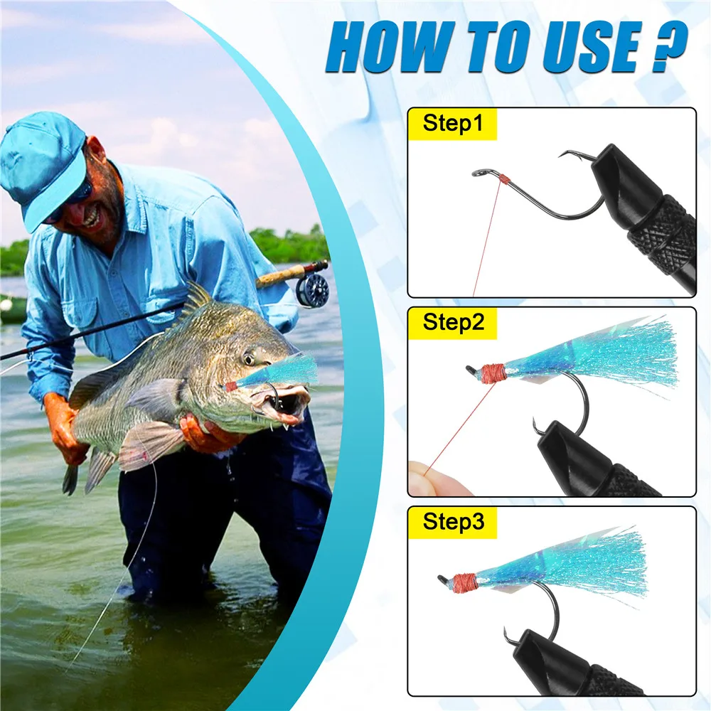 3. Amplia gama de usos: el kit de atado de moscas brillantes se puede aplicar ampliamente para la mayoría de los Señuelos de Pesca, como jigs, ala de hielo UV, oropel plano, materiales de atado de moscas con barras de cristal para serpentinas, plantillas de ninfas para moscas, accesorios de pesca.