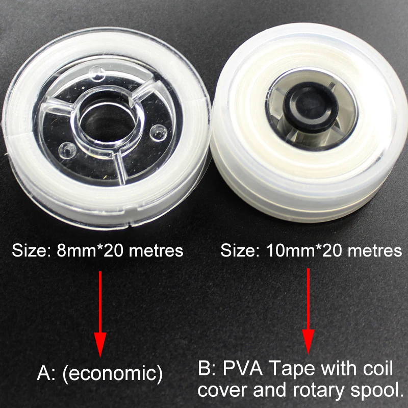 B: Cinta de PVA con cubierta de bobina y carrete giratorio.