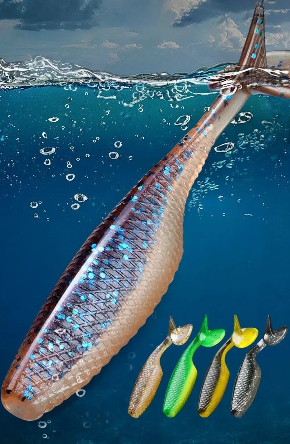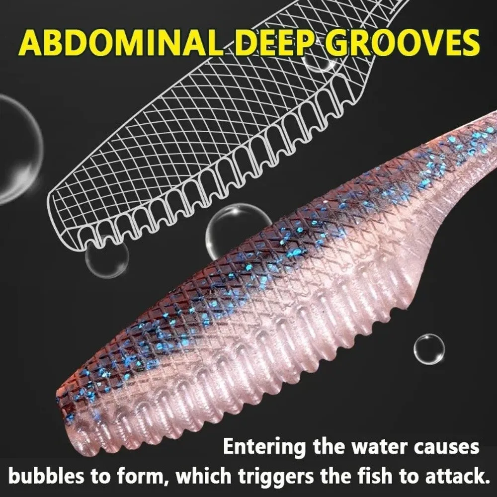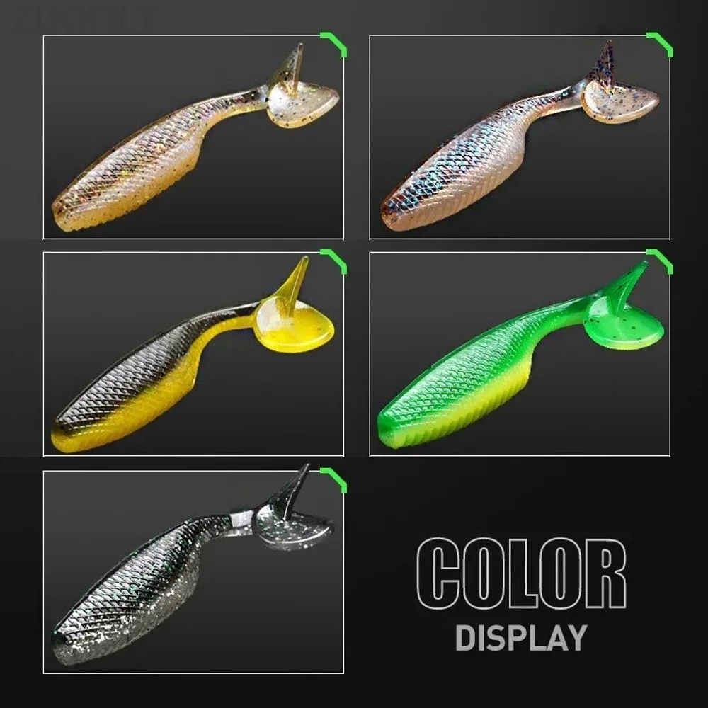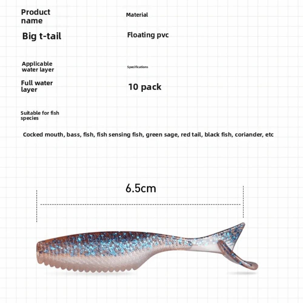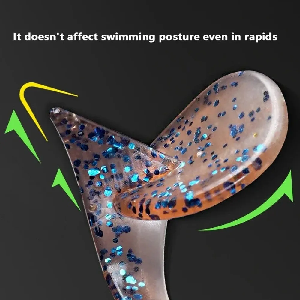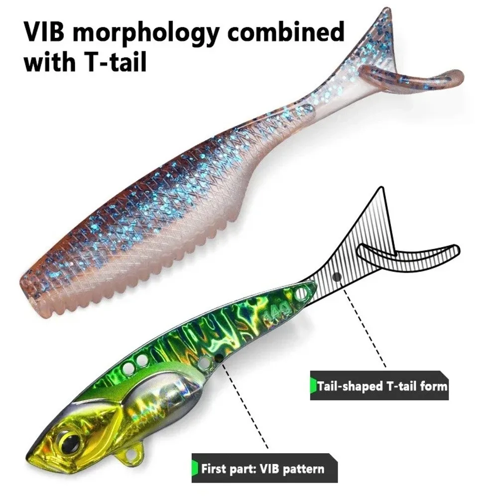 T-shaped tail with spiral pattern, showing high-frequency oscillation after entering the water, generating weak simulating the escape state of injured small fish, strongly stimulating their desire.