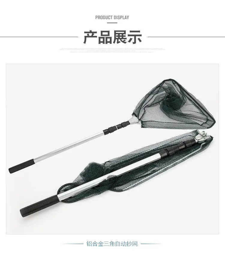 Material triangular de carbono portátil, red de pesca con mosca plegable, mango de mano de aterrizaje, aparejos de pesca, herramienta, accesorio, red de mano