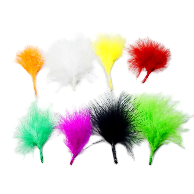 Materiales de atado de moscas de marabú de pavo sangre de 30 para moscas, alas, colas, 8 colores opcionales, serpentinas, plumas de pesca con mosca corporal