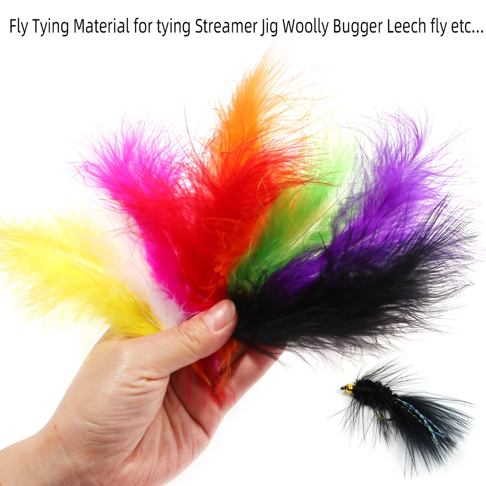 Wifreo 1 paquete de materiales para atar moscas de plumas de marabú para lanudo Bugger Streamer Leech señuelos de pesca con mosca cebos accesorios de aparejos de pesca