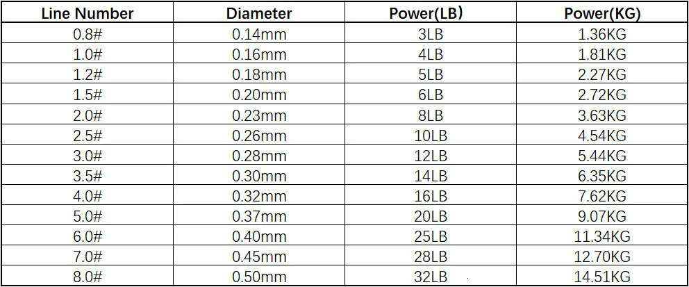 Número de línea 8,0 #: 0,50mm/32LB/14,51 KG