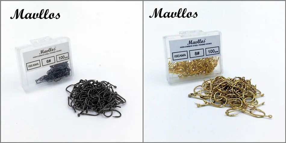 Mavllos-anzuelos de pesca de carpa, caja de anzuelos de acero inoxidable para pesca de agua salada, tamaño 3-12, estuche para señuelos, 100 unidades