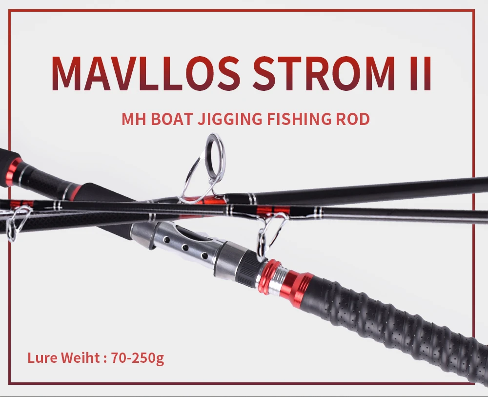 Longitud: 2,1 m | Longitud cerrada: 77,5 cm | Peso: 398g | Peso del señuelo: 70-250g | Peso de la línea: 30-50lb | Potencia: MH | Sección: 3 | Acción: rápido | Material: carbono| Diámetro superior: 3,43mm | Diámetro inferior: 18,33mm | Tipo: Carrete de pesca Jigging en barco |