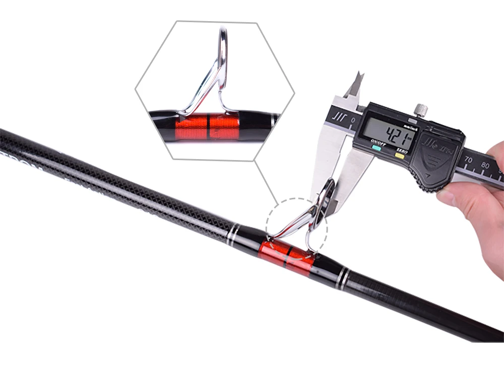 La caña está hecha de espacios en blanco de matriz de carbono de 24 toneladas, estable y reduce el peso de la caña, puede ayudarle a llevar un pez más grande.