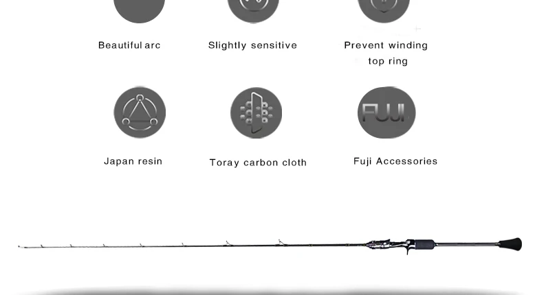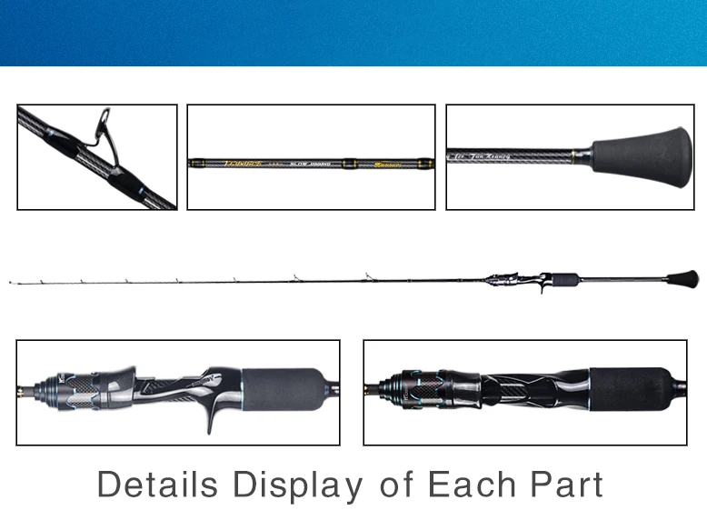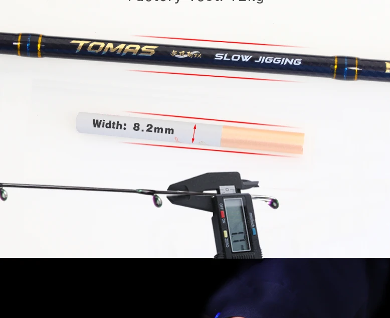 * Longitud: 1,98 M | Potencia: M | Diámetro superior: 1,7mm | Diámetro inferior: 11,5 Peso mm |: 180g | Peso del señuelo: 80-350g | PE: 1,5-3,0 # | Acción: Lento | Longitud del mango: 58cm | Longitud de la sección superior: 147cm