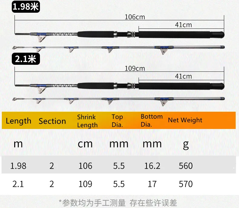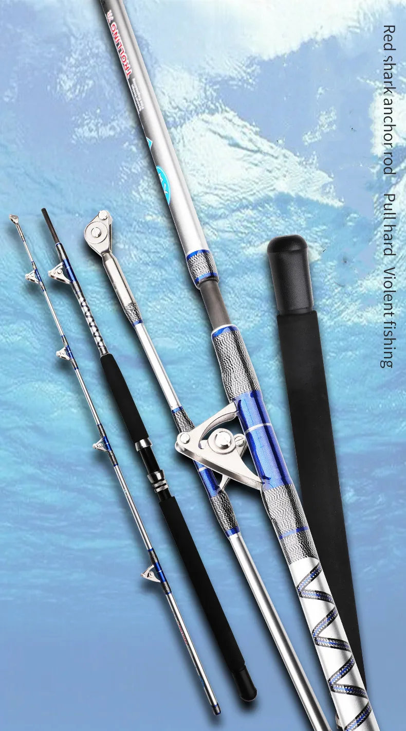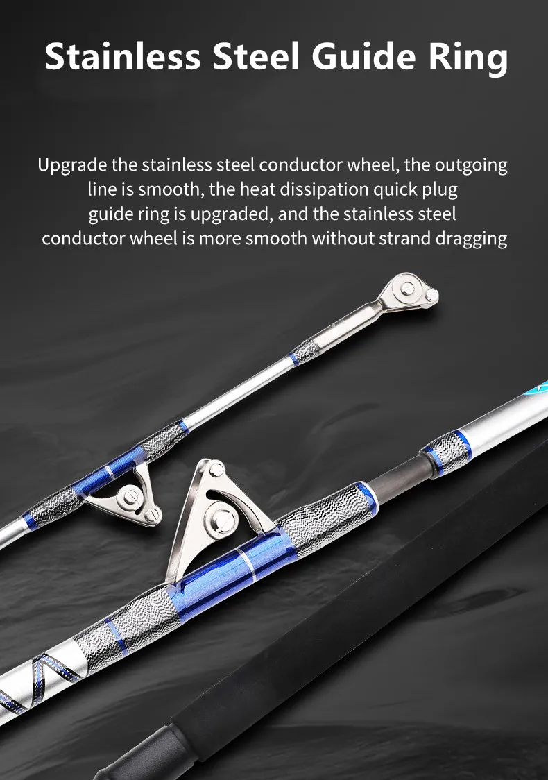Longitud: 1,98 M, 2,1 M | Longitud cerrada: 106cm,109cm | Varilla giratoria | 2 secciones | Señuelo W : 200-800g | Peso (aproximadamente): 560g,. 570g | Adecuado: Placa de hierro, mucho más peces de ataque | Dureza: XXH Característica: Super Jigging pesca Rod Adecuado para pescar muchos peces de ataque, nunca deje que escapen. Instale la varilla todo el anillo guía de acero inoxidable, línea de disparo suave, rápida disipación del calor Mango EVA de mucha más longitud, posee la mejor sensación de Manejo cómodo Esta caña puede ser apta para un ataque de peces de 80-180lb, nunca tenga miedo.