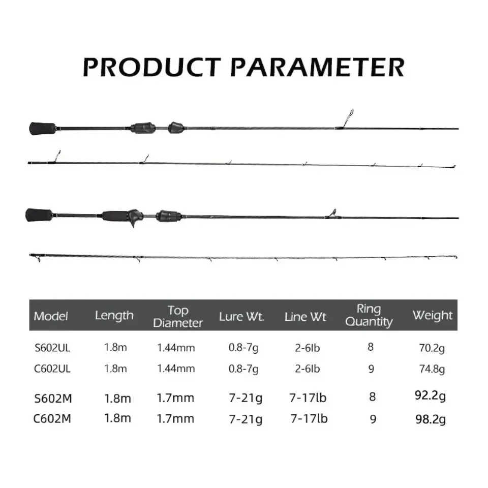 Varilla simple diseñada y parámetro estándar-La palabra blanca y el estampado plateado nunca pasarán de moda. Disfruta de la pesca con los parámetros estándar de la caña ultraligera.