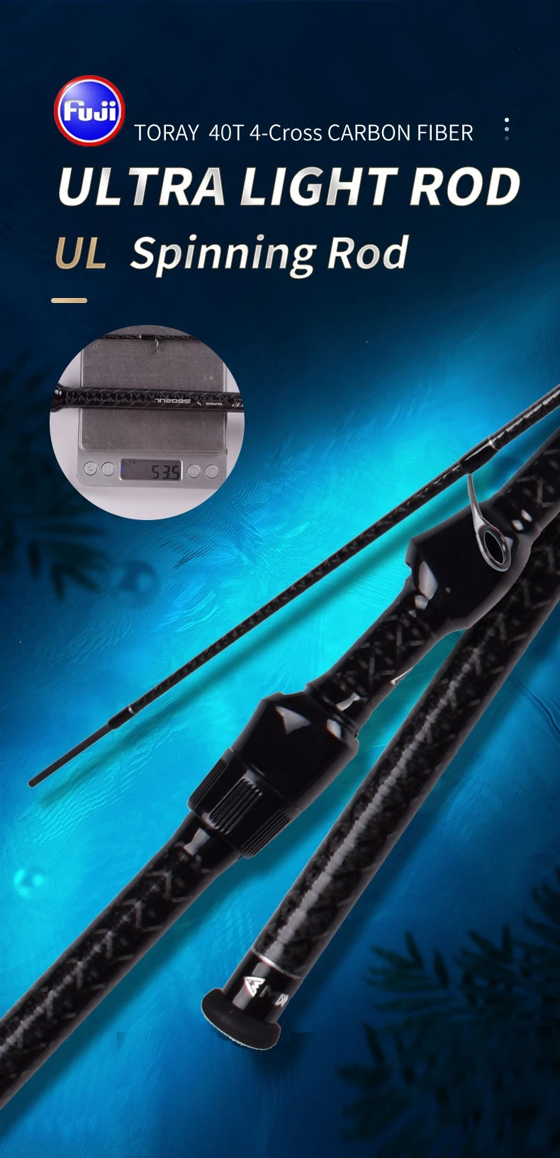 Ultralight rod, the weight is only 53.5g, easy to carry, suitable for fishing small fish, fishing friends are not tired after long hours of fishing.