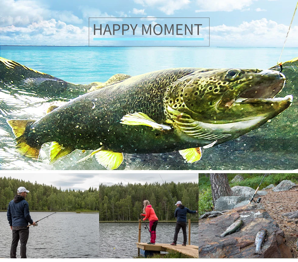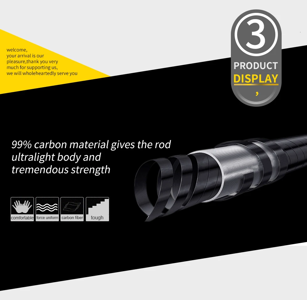 La caña está hecha de material de carbono de alta densidad y puede transportar peces más grandes.Y la potencia y la acción son precisas.