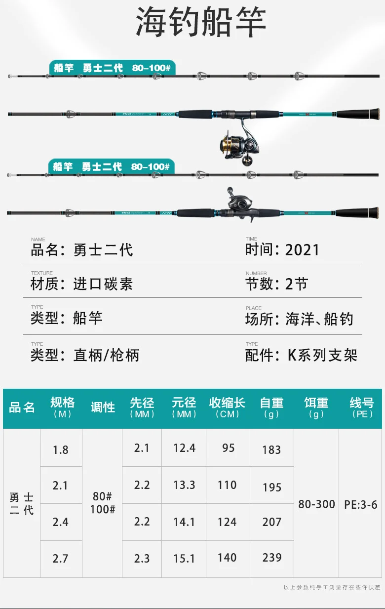 Mavllos-caña de pescar ultraligera para barco en alta mar, 2,1 m-2,7 m, placa de hierro, señuelo, línea de 80-300g, 37-50lb, caña de mar súper dura