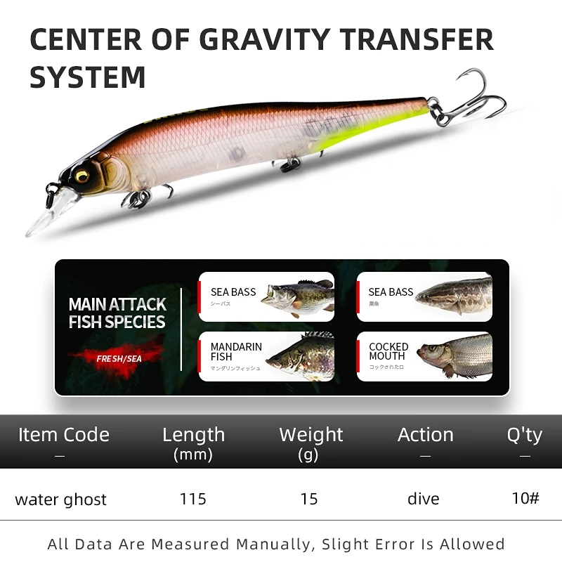 Mavllos-Cebo de fundición de 115mm, 15g, 1,2 m, sistema de peso de tungsteno, manivela Minnow Wobbler, señuelo de pesca superior de calidad