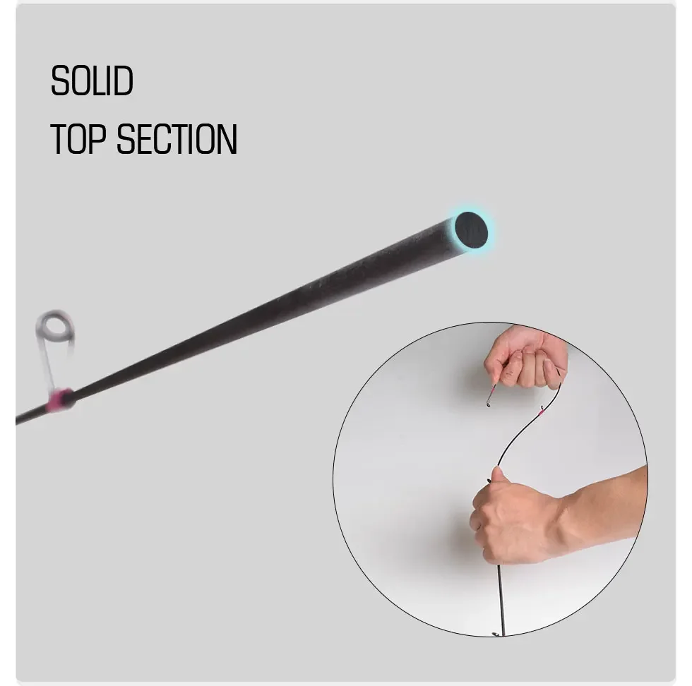 Consejos sólidos-Esta varilla está equipada conpunta sólida,El peso del señuelo es de 0,8 a 6 g, que es flexible y sentitivo, y tiene una aplicabilidad más amplia.