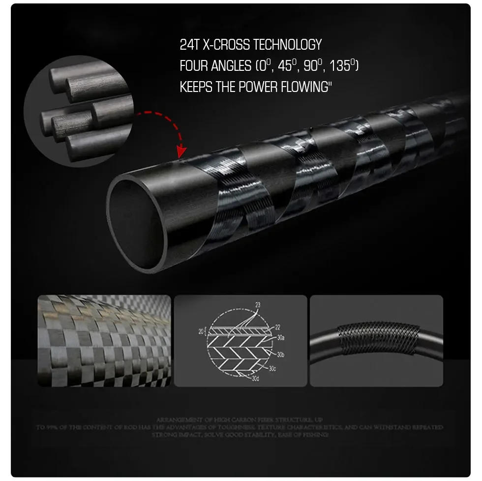24T / IM6 Carbono con X-cross-La tecnología X-cross con matriz de carbono en blanco de 24 toneladas ofrece una sensibilidad y un rendimiento más ligeros que el carbono normal.