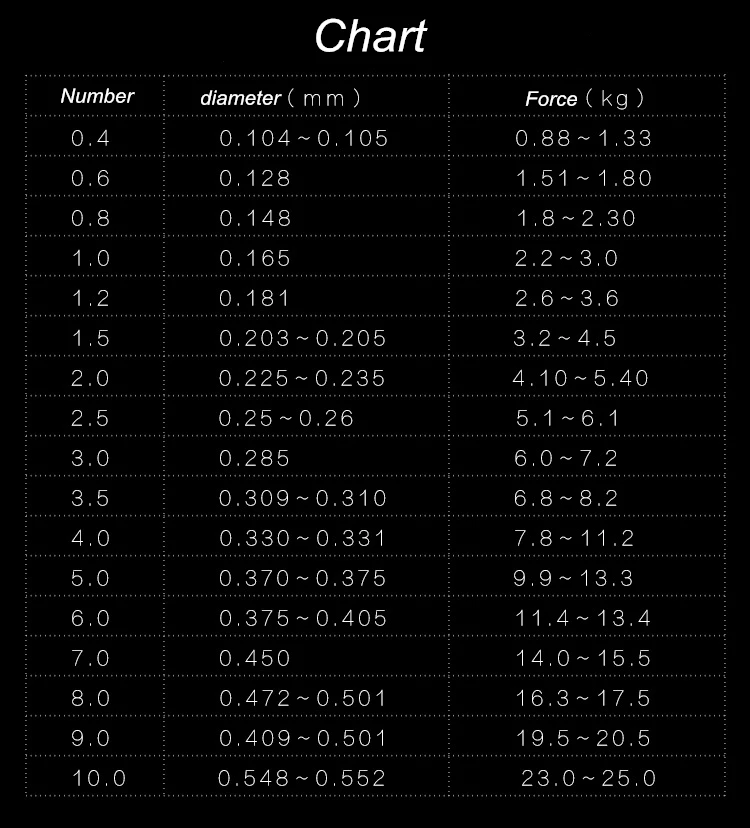 Número de línea 2,0 #: 0.225-0.235mm/4,1-5,4 kg